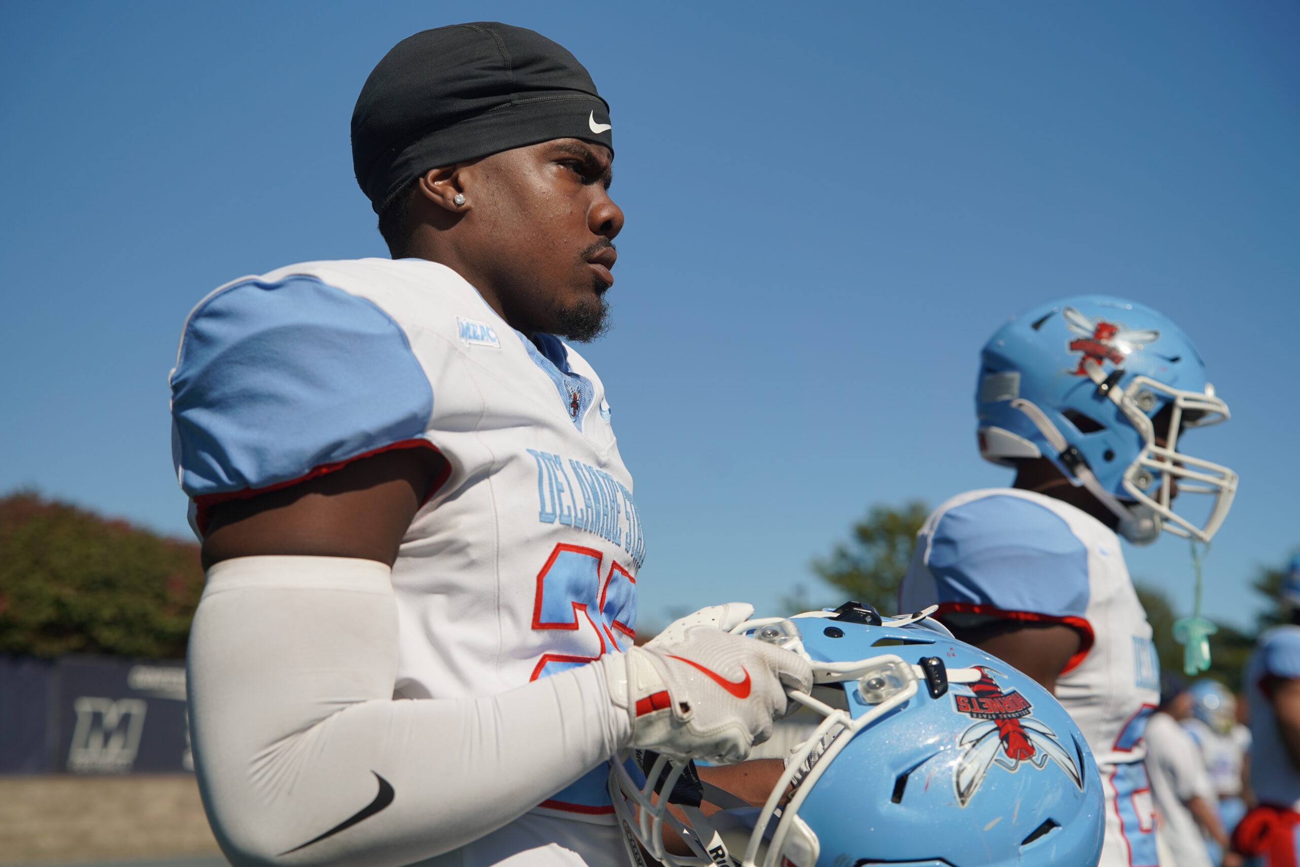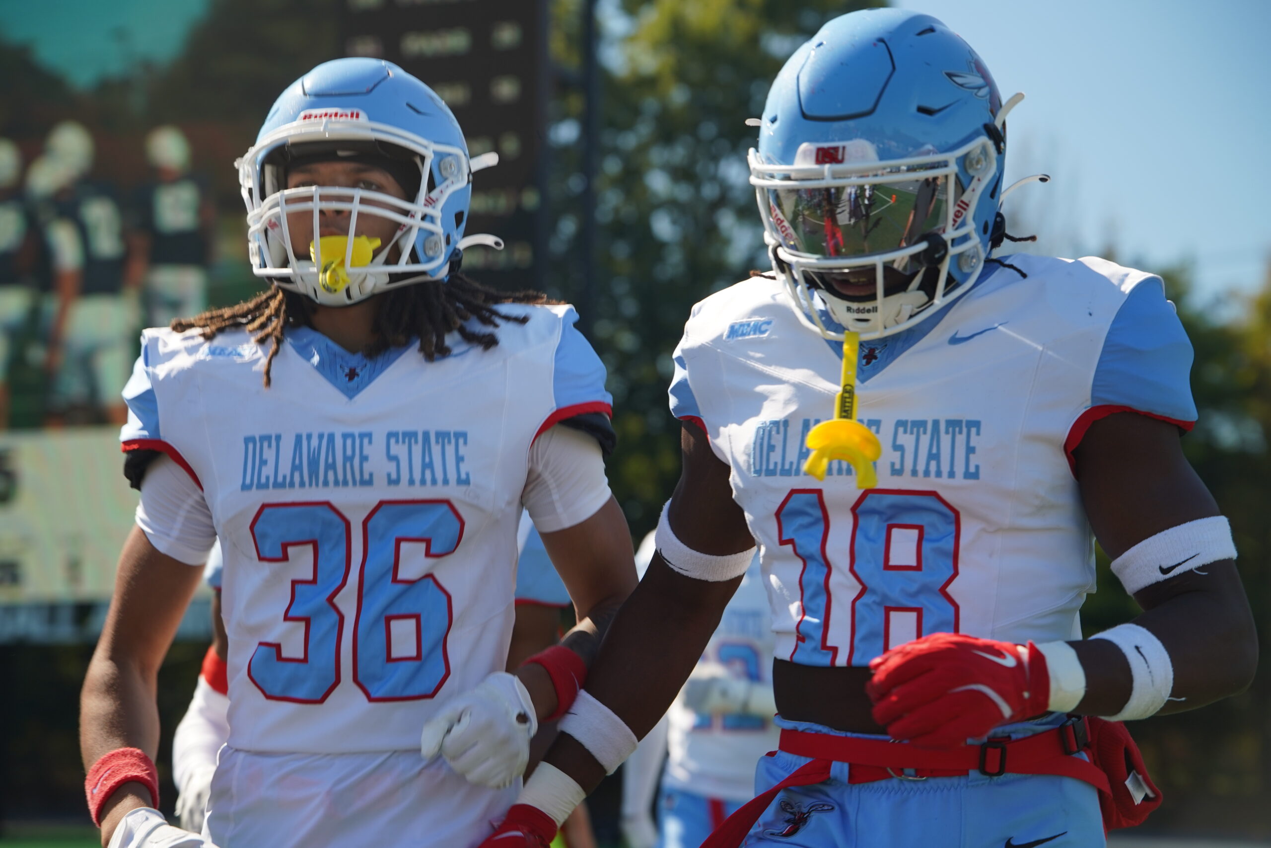 The Hornet defense battled to contain a hot Monmouth offense led by Derek Robertson, who threw for four touchdowns — but Delaware State never backed down.